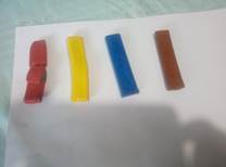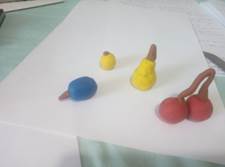 Издвојуваме парчиња пластелин во одредени бои –црвена, жолта, сина, кафеава.